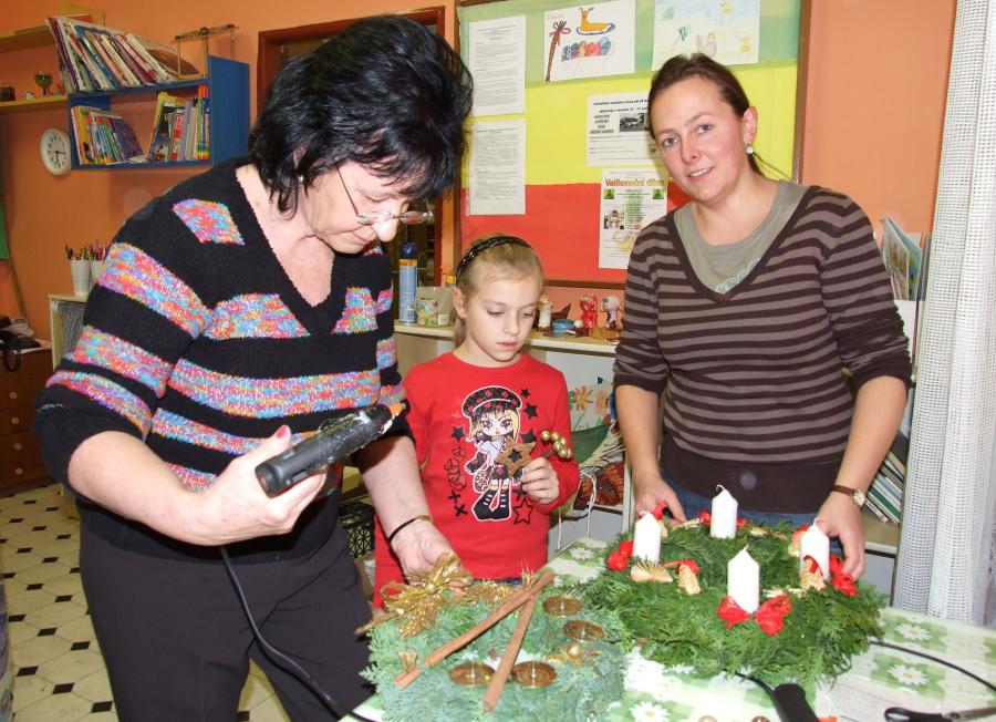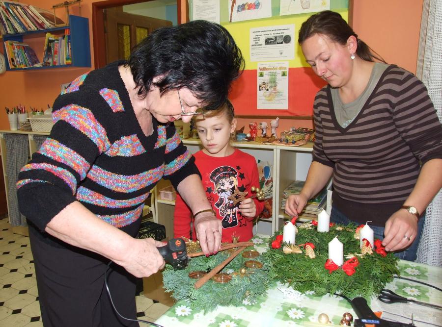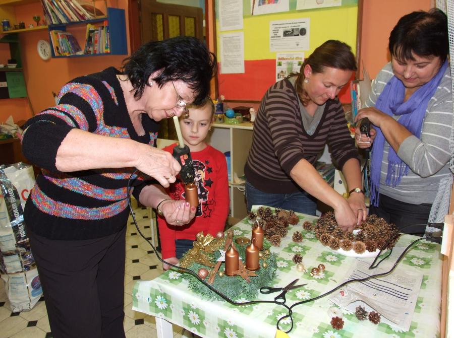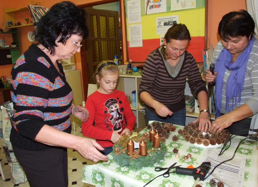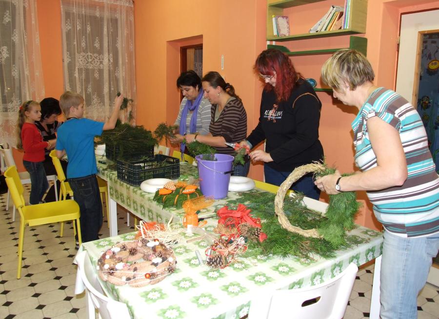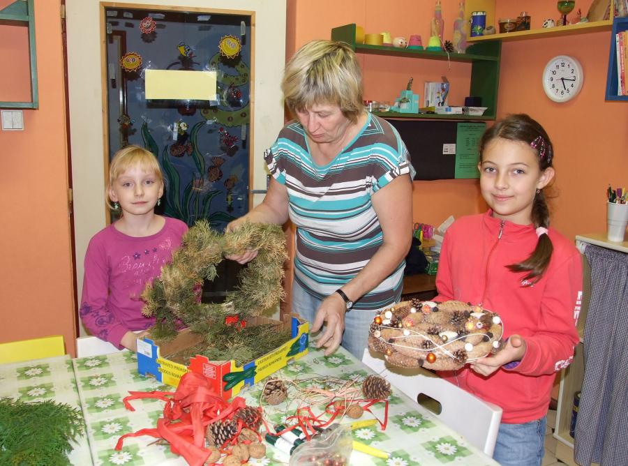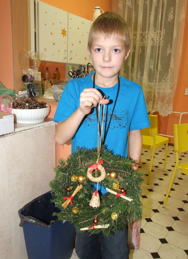 A navíc vlastnoručně vyrobený? Jedenáct účastníků páteční výtvarné dílny na „Domečku“, tedy na Středisku volného času při ZŠ, určitě ano a navíc, naprosto originálních a krásných. Děti, maminky i babičky se zde navečer sešly, aby si vyrobily snad tu nejtypičtější výzdobu pro tento předváčnoční čas. Některé zvolily možnost věnce na stůl, se čtyřmi svíčkami, někteří, včetně jednoho zručného hocha, věneček na ozdobení vstupních dveří domu či bytu.